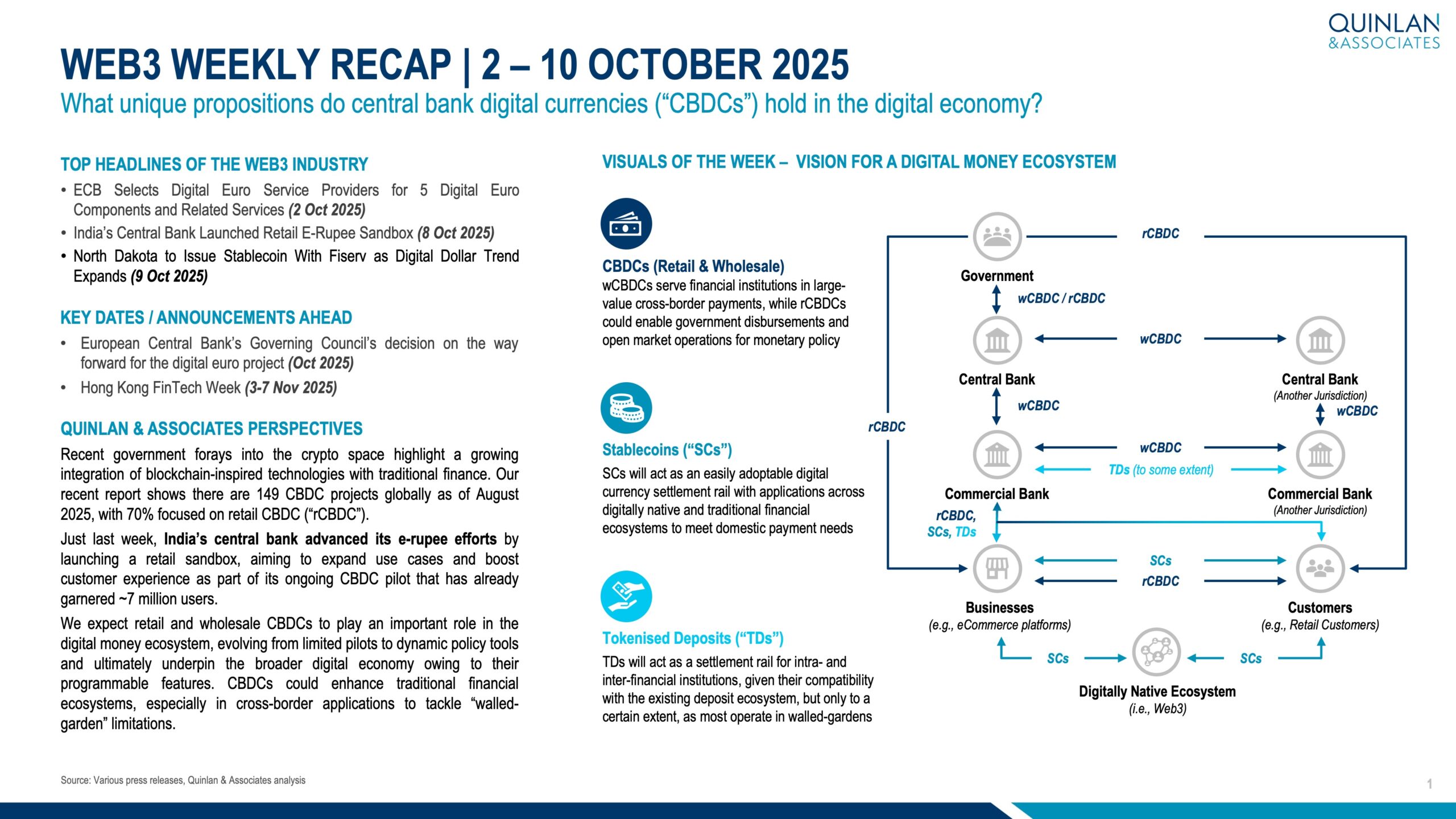 We expect retail and wholesale CBDCs to play an important role in the digital money ecosystem, evolving from limited pilots to dynamic policy tools and ultimately underpin the broader digital economy owing to their programmable features.